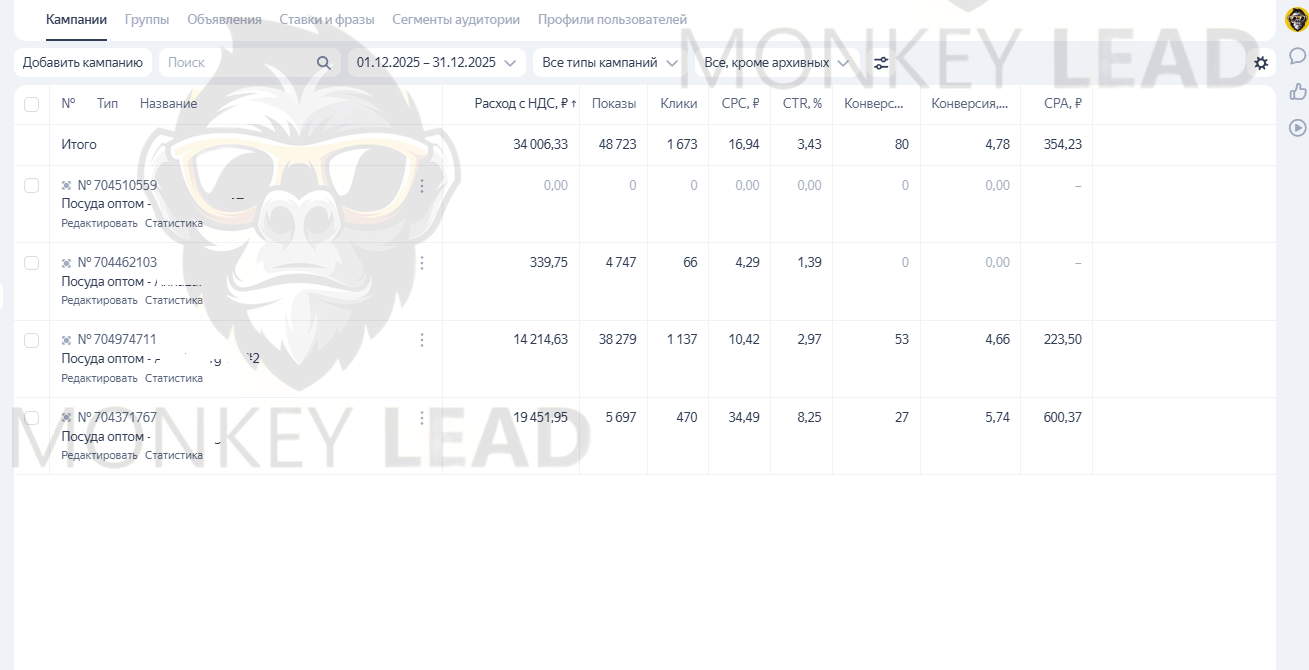 После первичной оптимизации рекламных кампаний, доработки структуры и офферов: